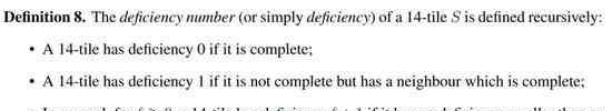 如果我们定义了随机 14 张牌的牌面表示和缺牌数,现在只需要知道怎样评估当前牌面的好坏,并通过打牌来把缺牌数降低到 0 就行了。首先对于清一色的 14 张牌,它的缺牌数少于等于 3 张,论文的第三章主要就在讨论和证明这一点。