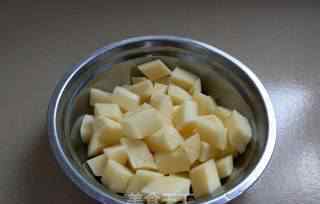 土豆一个一个的去皮切块,把表面的淀粉洗掉。