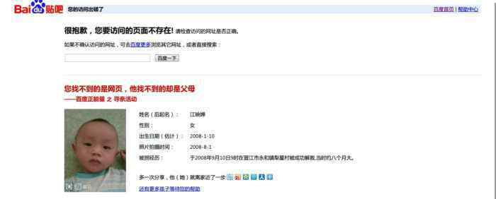 腾讯、百度、网易的“404页”都是失踪儿童信息。这404页允许用户在他们的404页中嵌入一个简单的代码,并通过这个页面传播失踪儿童的信息,这反映了一个企业对公益事业的态度。