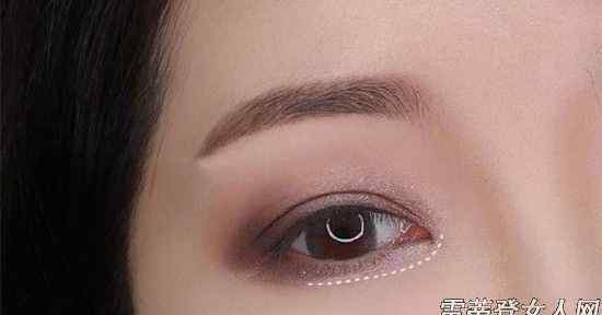 用大眼影刷把眼影背景色蘸在眼窝里,涂抹在白色原点区域。眼影的背景色有两个特点,一是浅色,二是通常在眼影盘中面积最大。