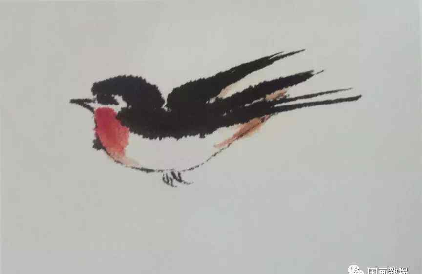 第五步:用蘸有淡墨的止腱笔画燕子的肚子。