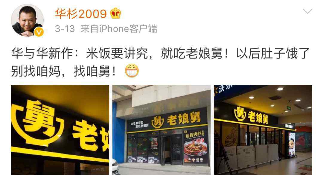 网友B:“老叔的口号曾经是:注意饮食,吃老叔就好。口号会改成一个字。中国和中国没有私心,没有创作冲动,牛!”