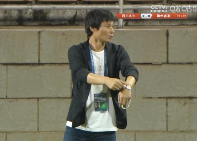 中甲联赛第10轮一场焦点战,四川九牛迎战梅州客家。最终,双方战成0-0平。在比赛最后时刻,发生了很有意思的一幕,四川九牛队主帅李毅指导,在伤停补时还剩半分钟时,就忍不住指着手表提醒主裁吹哨,可见内心有多着急,他对拿1分是非常满意的。