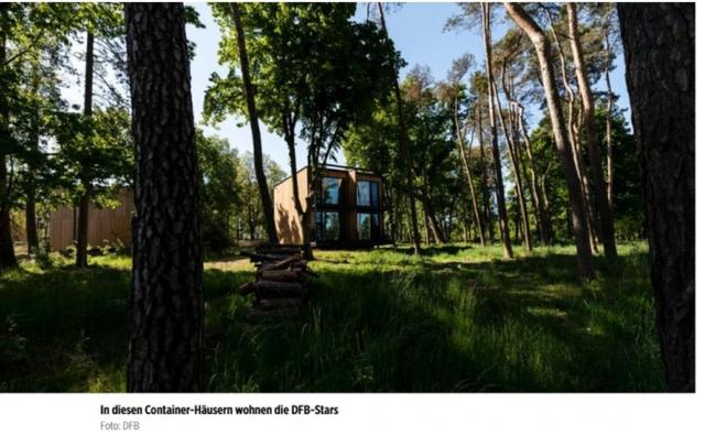 这次德国队欧洲杯的住宿颇具特点,根据《图片报》报道,德国队的球员已经入住了他们的宿舍,未来几周时间里,他们都将住在特制的集装箱共享公寓中,平均每三到4个人住在一个“单元”中,一个共享的类似公寓的集装箱单元。