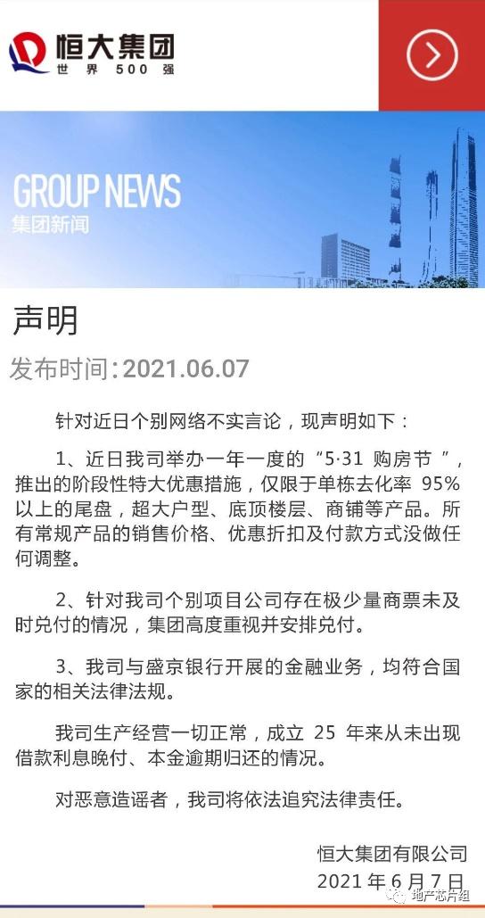所以,许家印“红转绿“的誓言是在给投资者吃”定心丸“,而“针对近日个别网络不实言论“,6月7日恒大集团在声明中的申辩,事实上也是再次试图平息投资者担忧。