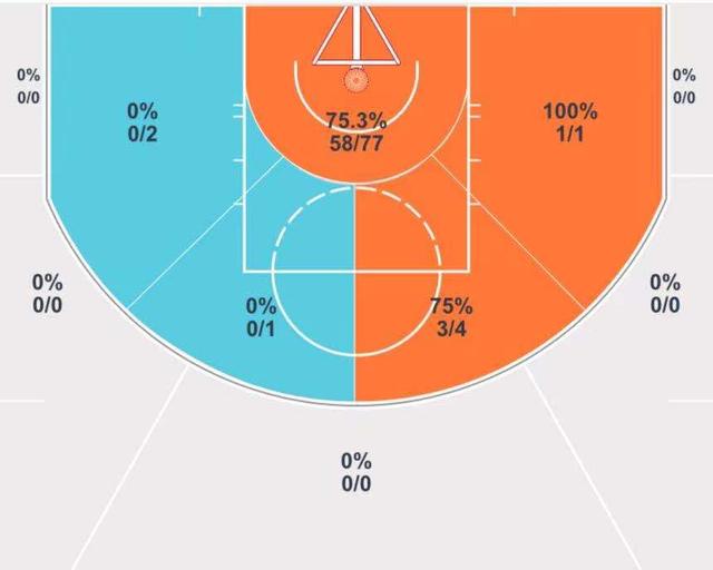 除了防守端的贡献,艾顿在进攻端的改变也很明显。常规赛的时候,很多球迷说艾顿的打法太软,明明可以冲进去一个暴扣,却总喜欢来一个漫不经心的跳投。常规赛的时候,艾顿一共出手了683次,其中禁区出手515次,占比75.4%,中投出手148次,占比21.6%,而三分出手20次,全部都在弧顶,只命中了4球,占比3%。