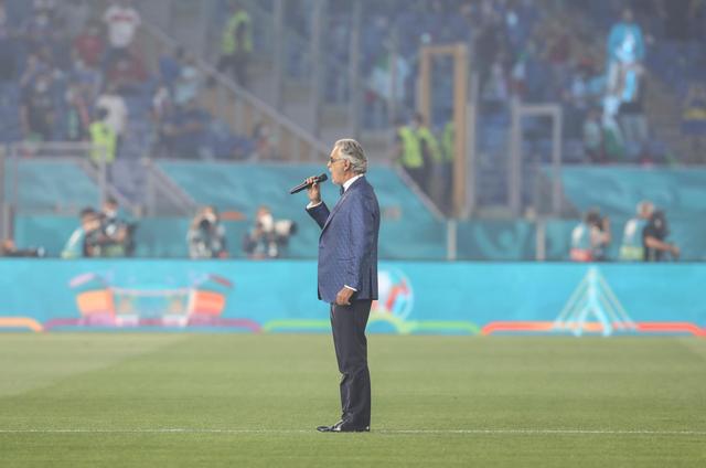 6月11日,意大利歌唱家波切利在开幕式上演唱。新华社记者程婷婷摄