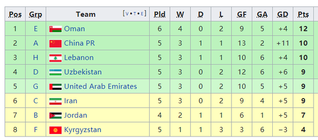 C组的伊拉克17分排名榜首,伊朗15分排在第2位。从数据上看,伊朗虎虎生威:打进33球,只丢4球,净胜球多达29个。不过,除掉与倒数第1柬埔寨的两场比赛:14-0和10-0,伊朗在“各小组第2积分榜”上,有效积分只有9分,外加5个净胜球,仅排在第6位。
