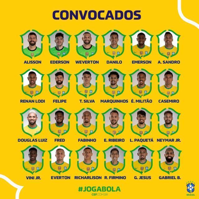 在欧洲足坛法国队人才井喷,被视为欧洲杯夺冠的最大热门,而在美洲足坛,巴西队依然是状态最稳定、阵容最强大的一支球队,为了征战即将开战的美洲杯,桑巴军团主帅蒂特公布的大名单可谓是尽遣精英,特别是在旅欧球员方面,蒂特毫不吝惜将最好的球员召入队中,在最终名单中,在巴西国内效力的球员仅有第三门将韦弗通、弗拉门戈队长埃弗顿·里贝罗和曾在国际米兰和本菲卡效力的弗拉门戈前锋加布里埃尔·巴尔博萨三人,蒂特的名单中既有蒂亚戈·席尔瓦、费利佩·蒙特罗等老将,也有年轻的维尼修斯、埃默松、道格拉斯·路易斯等人。
