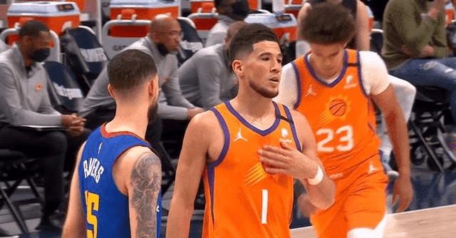 本场比赛一开始,客场作战的菲尼克斯太阳队就率先进入状态。在队内当家球星德文-布克打满首节12分钟,以6投4中的高效命中率,送出11分4篮板3助攻外加1抢断的数据帮助下,太阳队顺势打出了37-27的比分,取得10分的领先。开局就实现喧宾夺主,拿到两位数的领先优势,太阳队还真是一支神奇的球队。而进入次节对决之后,意欲反击的掘金队,却始终不得其果。