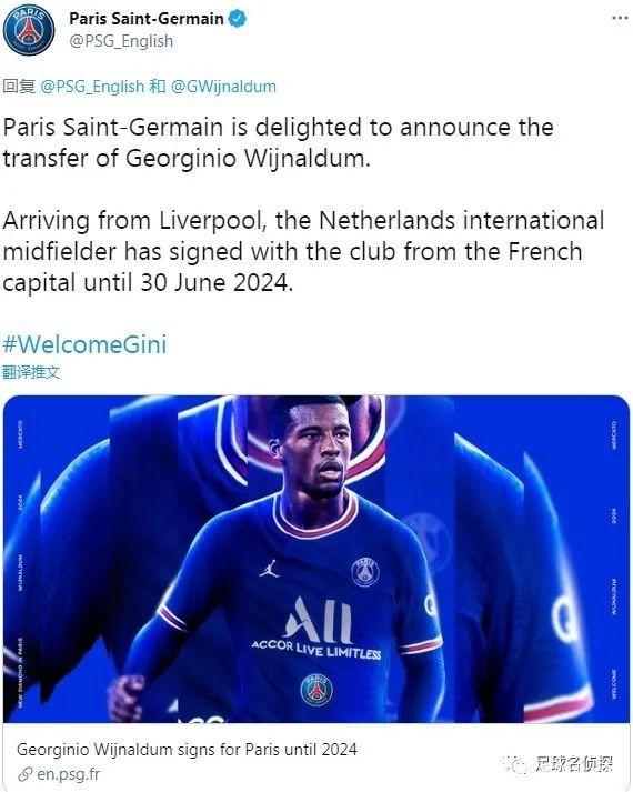 官方:巴黎宣布从利物浦免签了维纳尔杜姆,这名中场签下了一份2024年到期的合同。