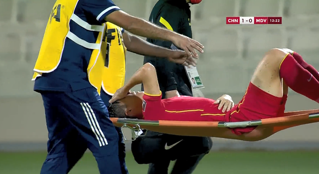 早早比分领先的中国男足踢得更有耐心,第10分钟,阿兰做球给刘彬彬,刘彬彬禁区前沿调整后直接远射,球稍稍偏出。第12分钟,中国男足遇到伤病打击,明天在右路的一次争抢后肩部受伤,被吉翔换下。第15分钟,蒿俊闵右路传中,禁区内张玉宁头球攻门击中门柱外侧弹出底线。
