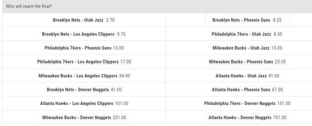 根据美媒总决赛的赔率来看,雄鹿在次轮也是炮灰了,爵士VS篮网2.7第一,太阳VS篮网4.25第二,快船VS篮网5.75第三,爵士VS费城队8.5第四,后面的没有太大的意义,从前四就能看出东区篮网晋级的机会最大,雄鹿是篮网次轮对手,那么就是炮灰, 这一组数据扎心雄鹿了吧?