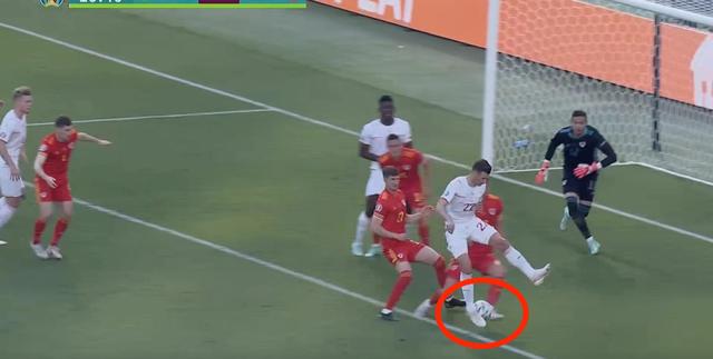 威尔士球员在禁区内摆出防守阵型时,漏掉了瑞士后卫法比安·沙尔。这一点也被负责开角球的沙里奇看到。