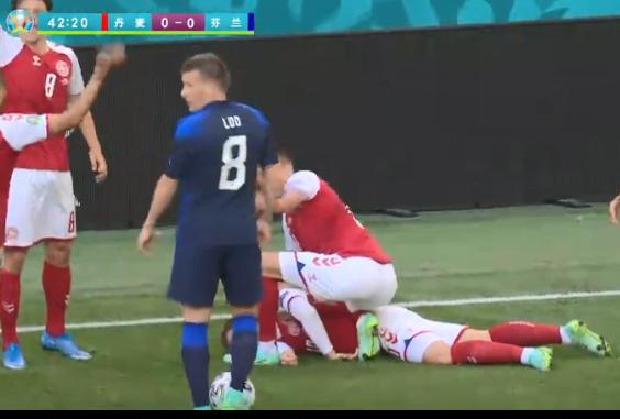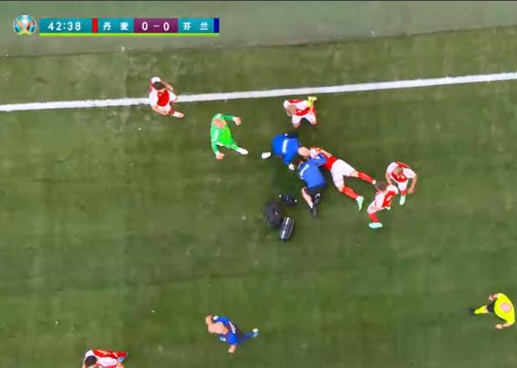 B组首轮比赛,丹麦对阵芬兰,这场比赛上半场出现突发情况,丹麦球星埃里克森在第43分钟突然无对抗情况下倒地,出现了休克的情况。幸好现场的救治及时,在离开球场时,埃里克森已经恢复意识,之后被送往医院接受治疗,已经没有大碍。因为这次突发事件,比赛暂停。