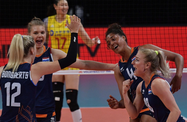 暂停回来之后,李盈莹两个发球,一个直接得分,一个直接送分,但好在中国女排打出了一波3-0的小高潮,以16-8进入第二个技术暂停。再次暂停回来之后,荷兰女排也没有打出任何反击,中国女排一波9-5之后,以25-12大胜荷兰女排,轻松拿下第一局。