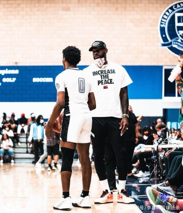 当然,还有詹姆斯客串教练,在场边指点儿子布朗尼。詹姆斯又化身詹教练了。