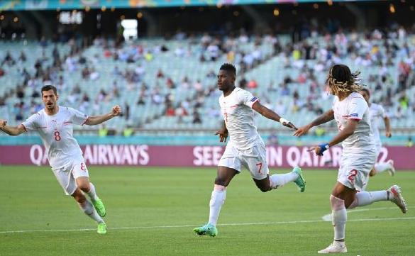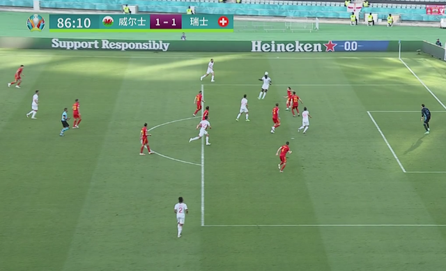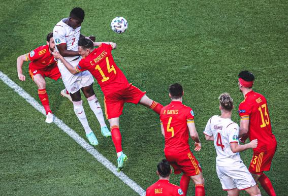 易边再战第48分钟恩博洛远射被挡出底线,创造关键角球,随后瑞士队开出角球,恩博洛高高跃起甩头攻门,打破僵局,威尔士0-1落后了。比赛第73分钟,威尔士扳平比分,在上半场额头被撞破的基弗-穆尔接到队友的任意球传中,霸气头槌入网,1-1,双方回到同一起跑线。