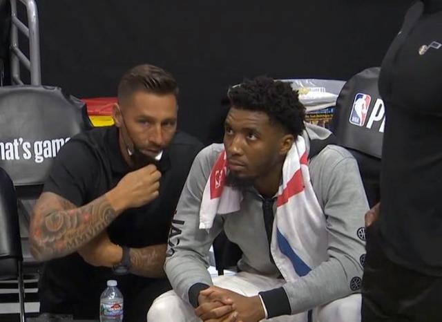 原本,多诺万-米切尔在场边搂着主帅斯奈德的肩膀,恳求他再次登场的。当快船连续2记三分命中后,看看两人的表情,太有意思了,如果配上旁白的话就是,斯奈德:还有必要上吗?米切尔:呃……让我缓缓。