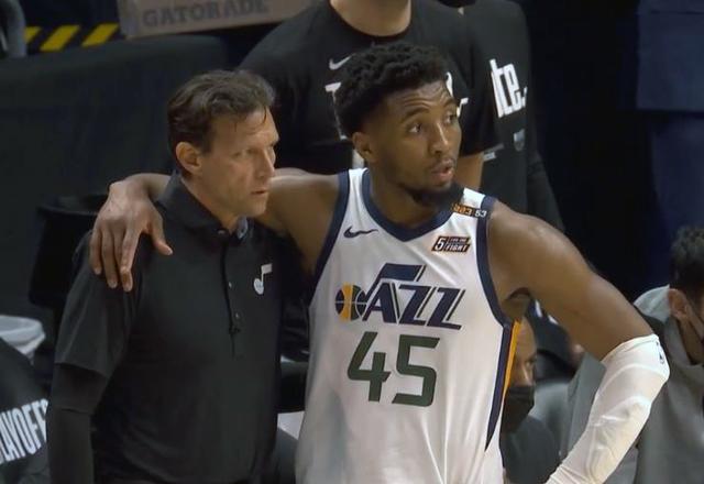 NBA季后赛西部半决赛第三场的较量,犹他爵士队客场挑战洛杉矶快船。最终,爵士队以106-132不敌对手,大比分被追成2-1,仍然领先。第四节末段,发生尴尬却很有意思的一幕,爵士队巨星多诺万-米切尔伤退后,恳求主帅再登场,比赛却突然变成了垃圾时间。