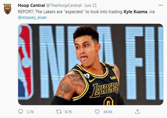 北京时间6月11日洛杉矶湖人又曝出了一个消息,湖人有意在休赛期通过交易送走凯尔-库兹马,库兹马这位26岁的前锋季后赛表现很差,场均21.5分钟,只能拿下6.3分3.8篮板1.2助攻0.33抢断0.17盖帽,命中率29.7%,三分命中率17.4%,湖人管理层对他已经彻底失望。