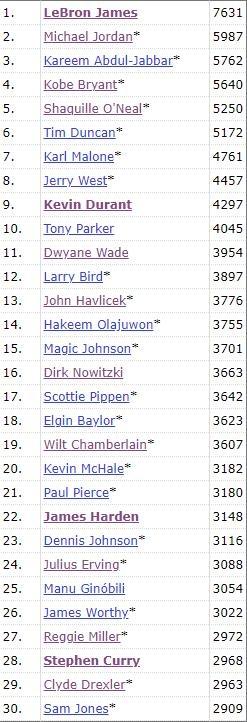 这样一来,小卡季后赛得分来到2834分,连超尤因(2813分)、帕里什(2820分)和巴克利(2833分),升至NBA历史第31位。
