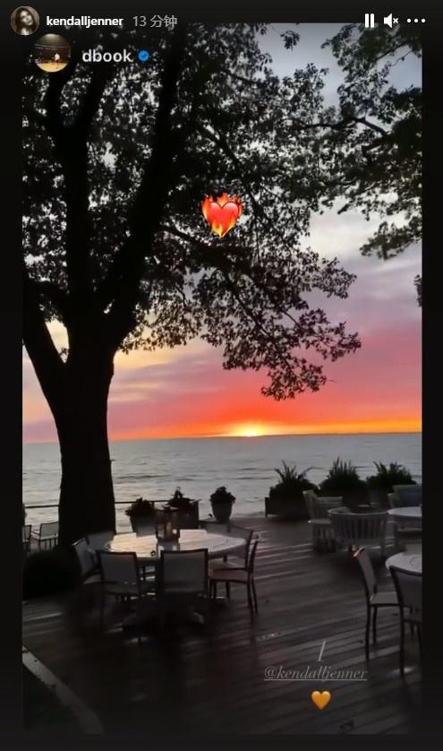 其中,布克发出一条记录了海边日落浪漫场景的视频(下图),并用一个橙色心形emoji表情向詹娜示爱,后者则回复了一个燃烧的心形emoji。