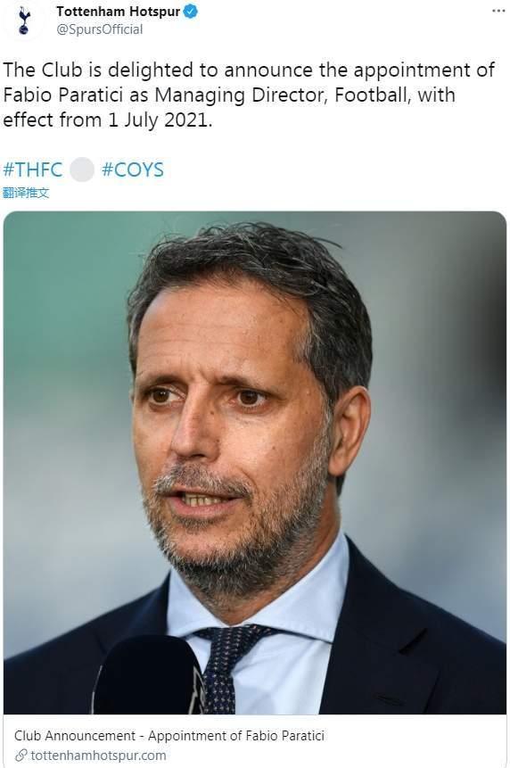 官方:热刺宣布任命帕拉蒂奇为俱乐部总监,7月1日正式生效,帕拉蒂奇将负责管理和发展热刺体育竞技方面的运营工作,以及足球基础设施的升级改造等。