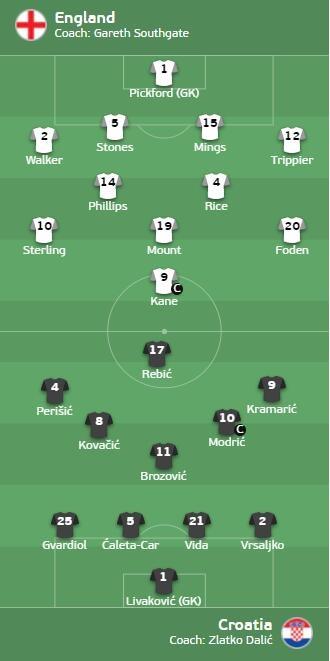 欧足联官网给出的英格兰阵型是4-2-3-1,特里皮尔出任左后卫,奇尔维尔和桑乔没有进入比赛名单。记者表示:“在温布利的球迷们通过手机看到首发阵容后,他们进行了热烈谈论。特里皮尔出任左后卫看起来是他们的主要讨论点,要知道奇尔维尔和卢克肖本赛季表现不错。”