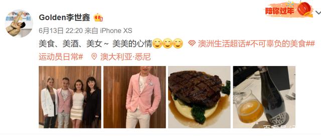 李世鑫写道:“美食、美酒、美人~美美的心情。”可以看到,李世鑫非常开心,晒出了“左拥右抱”照片,与外国女孩在一起享受着美食与美酒,心情非常愉悦。