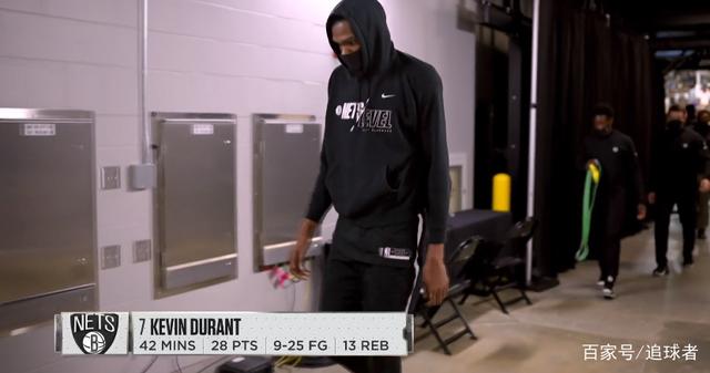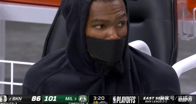 篮网输球以及欧文受伤,杜兰特十分沮丧,比赛还没结束他就提前离场,戴着卫衣帽和黑色口罩,第一个走回更衣。