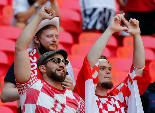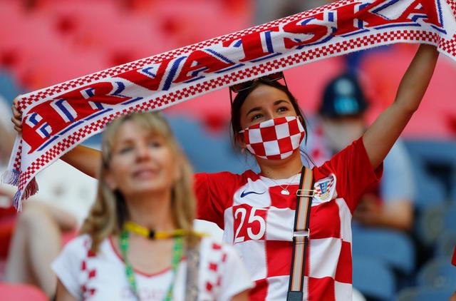 6月13日,克罗地亚队球迷赛前为球队加油助威。新华社记者 韩岩 摄