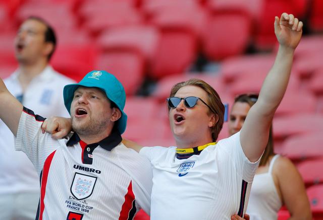 6月13日,英格兰队球迷赛前为球队加油助威。 新华社记者 韩岩 摄