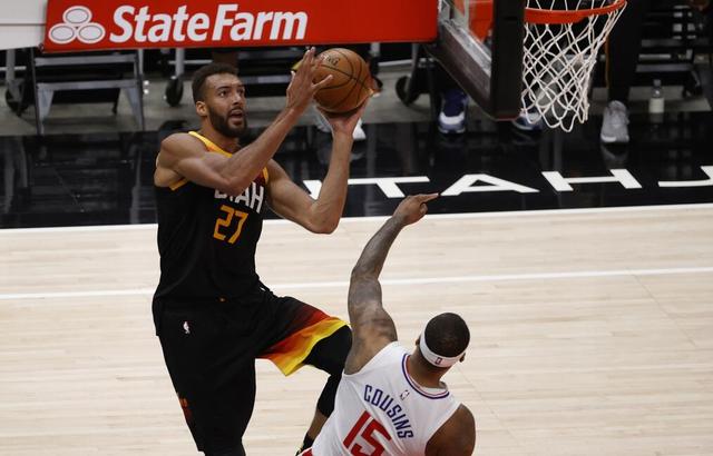 也是因为第一场表现不错,考辛斯第二场才能获得11分10秒的出场时间。在卢指导用大个阵容对付爵士队时,考辛斯的块头和经验派上了用场。数据也显示,考辛斯在对位戈贝尔时表现出色。两场比赛,考辛斯在防守端对位戈贝尔2分27秒,戈贝尔4投仅1中。反过来,戈贝尔防守他2分50秒,他反而是5投2中。虽然戈贝尔是最佳防守球员而且处在巅峰,考辛斯已经是连续遭遇重伤,最近两个赛季连续被湖人队和火箭队放弃的落魄巨头,但他面对考辛斯依然占据上风。