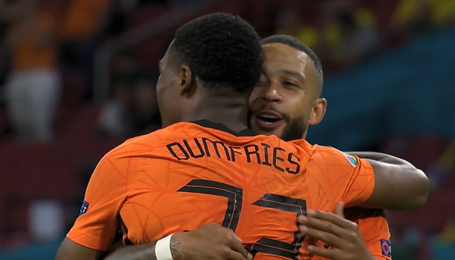 下半场,荷兰突然发力,第52分钟邓弗里斯右路带球狂奔,低平球送到门前,乌克兰门将布什昌扑救脱手,维纳尔杜姆跟上左脚推射命中上角,1-0!时隔2528天,维纳尔杜姆再次在大赛上为荷兰进球,上一球还要追溯到2014世界杯季军战。