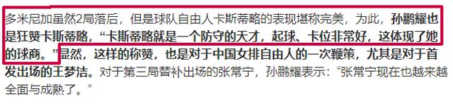 虽然作为央视的解说,孙鹏耀的一些话术还是很隐晦的,但你也足以知道,王梦洁与卡斯蒂略的对比,真的是太鲜明了。如一些人所言,我们的自由人无处不躲,他们的自由人无处不在,这就是差别。