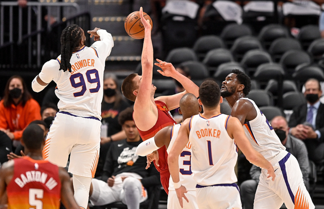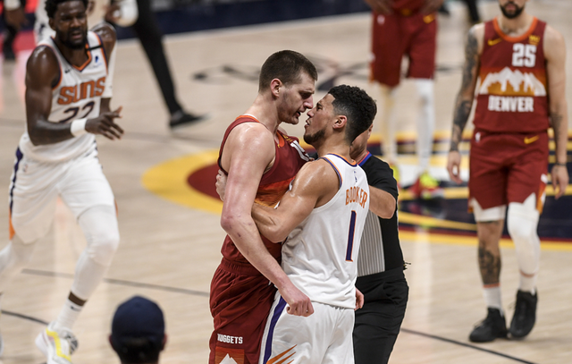 NBA分区半决赛继续进行,掘金坐镇主场迎战太阳,此前太阳大比分3-0领先掘金,这组对决已经失去悬念,太阳晋级西决恐怕只是时间问题。而掘金方面并没有放弃,本场比赛将巴顿和莫里斯提上先发,但是前三节太阳始终保持压制状态,一度将分差拉开到16分,而且在第三节末段,约基奇因为对佩恩二级恶意犯规被驱逐离场!虽然第四节掘金没有放弃,但保罗在关键时刻连拿5分,最后20秒两罚全中锁定胜局。最终掘金主场118-125不敌太阳,太阳总比分4-0晋级西决!