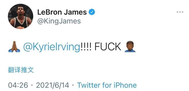 詹姆斯第一时间发推为欧文祈祷:“祈祷@欧文!我靠!(爆粗口)”不管是哪个球员,我们都不希望看到有人受伤。但伤病又是比赛的一部分,有时候真的令人无奈和伤感。