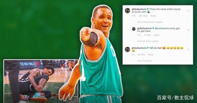 欧文的伤情牵动着无数球员和球迷的神经,前凯尔特人球员——“大宝贝”格伦-戴维斯却发出了疑似嘲讽的言论,他在欧文受伤的相关新闻下评论道:“欧文踩凯尔特人队标也是用的这个脚踝。luck(凯尔特人吉祥物)回击了。”