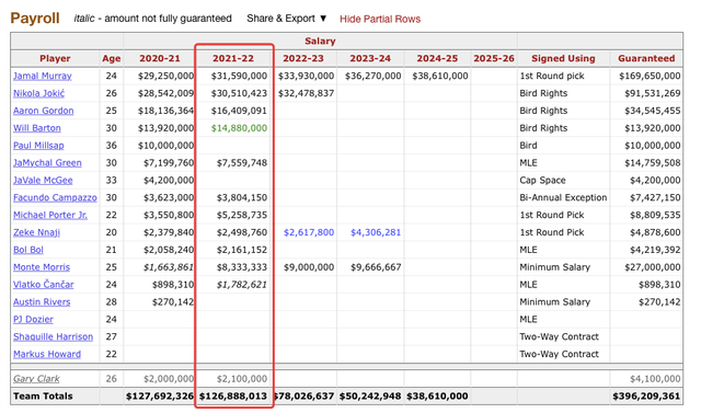 综上分析,掘金休赛期的操作就很明显了。目前,他们下赛季有保障合同在身的球员薪资总和已经超过了1.2亿美元。掘金有可能会跟小波特提前续约留下他,米尔萨普的合同到期,恐怕会自动离队,麦基合同也到期,同样大概率离队。