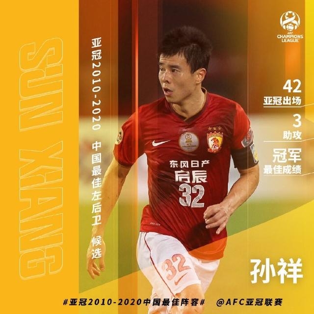 直播吧6月14日讯 亚冠官方公布2010-2020中国最佳阵容左后卫候选名单,孙祥、李学鹏、王燊超在列。