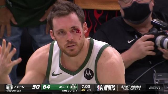 直播吧6月14日讯 在今天战胜篮网的比赛中,康诺顿被哈里斯打破眼角,随后离场接受治疗。