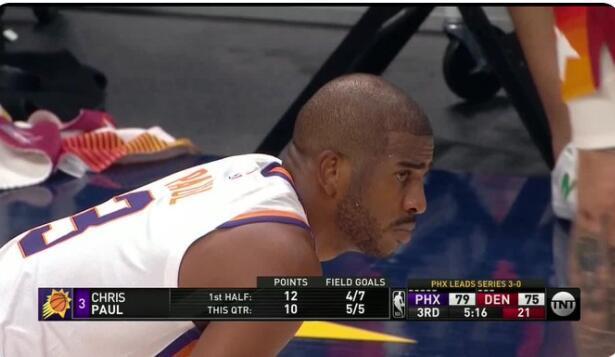 太阳系列赛G4对阵掘金,第三节还剩3分52秒,太阳83-75领先8分。