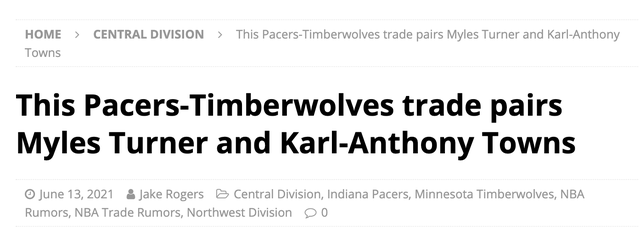 步行者和森林狼都是需要在今年休赛期有所举动的球队,毕竟他们在过去这个赛季都无法闯入季后赛并且希望在2021-22赛季改变这种状况。而美媒杰克-罗杰斯给到的建议是森林狼和步行者之间能推动涉及迈尔斯-特纳的交易: