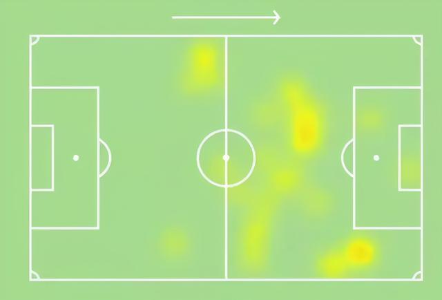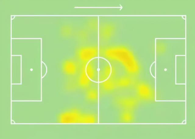 全场比赛,凯恩 7 次一对一地面对抗,赢得了 4 次;还有 2 次争顶,成功了 1 次,贡献了 2 次铲球,上图是凯恩全场活动热区图,中前场活动非常频繁,带动了英格兰的进攻。