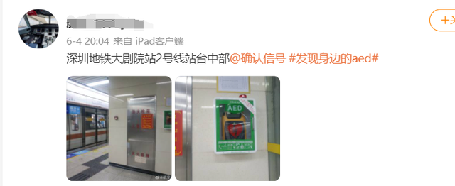 在前段时间刚刚举办的#发现身边的AED#活动中,不少网友为深圳点赞,在地铁、公园、小区等多个公共场所配置了AED装置。