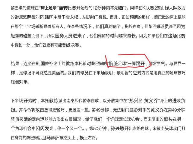 所以,当看到这样一幕的时候,韩国队的主教练保罗本托,都对黎巴嫩的肮脏足球非常生气,足球场上不可能总是完美的,但是韩国在下半场用出色的表现证明,最明智的应对方式,就是用真正的足球技巧去压倒对手。下半场的比赛,孙兴慜包括队友的进球都是非常的货真价实,展现出来了高超的足球技巧,并且孙兴慜对埃里克森做出的一个比划23号的动作,也是真挚的传递了足球的感情。