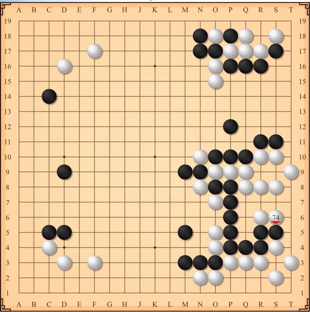 黑棋应对有误给了白棋机会,可惜白棋没有把握住。一番操作下来白棋也没有取得什么实质性的便宜,并且62一着不慎让自己陷入极大被动,至74落得个后手活,黑棋开始取得领先。