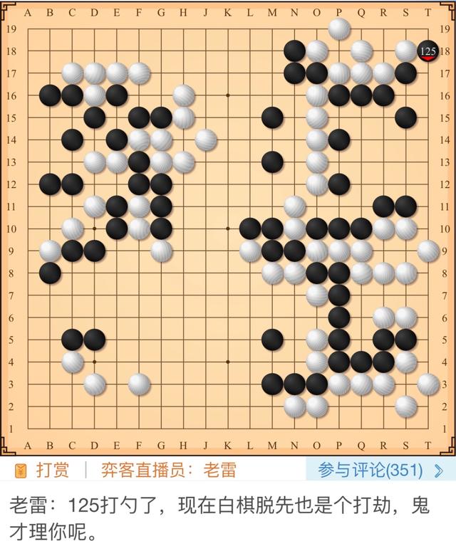 中盘阶段眼见胜率要接龙,王星昊112以下开始拼命,关键时刻黑棋弈出125的败着,白棋以下招招最强应对,局势变得复杂。