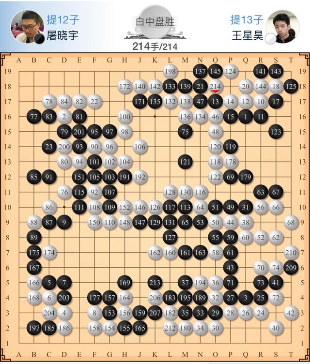 被压制了大半盘的白棋占得上风之后体现了优秀的控制能力,处处处理得当,没有给黑棋任何机会。屠晓宇后又顽强抵抗了几十手,眼见无主望,只好签署城下之盟。